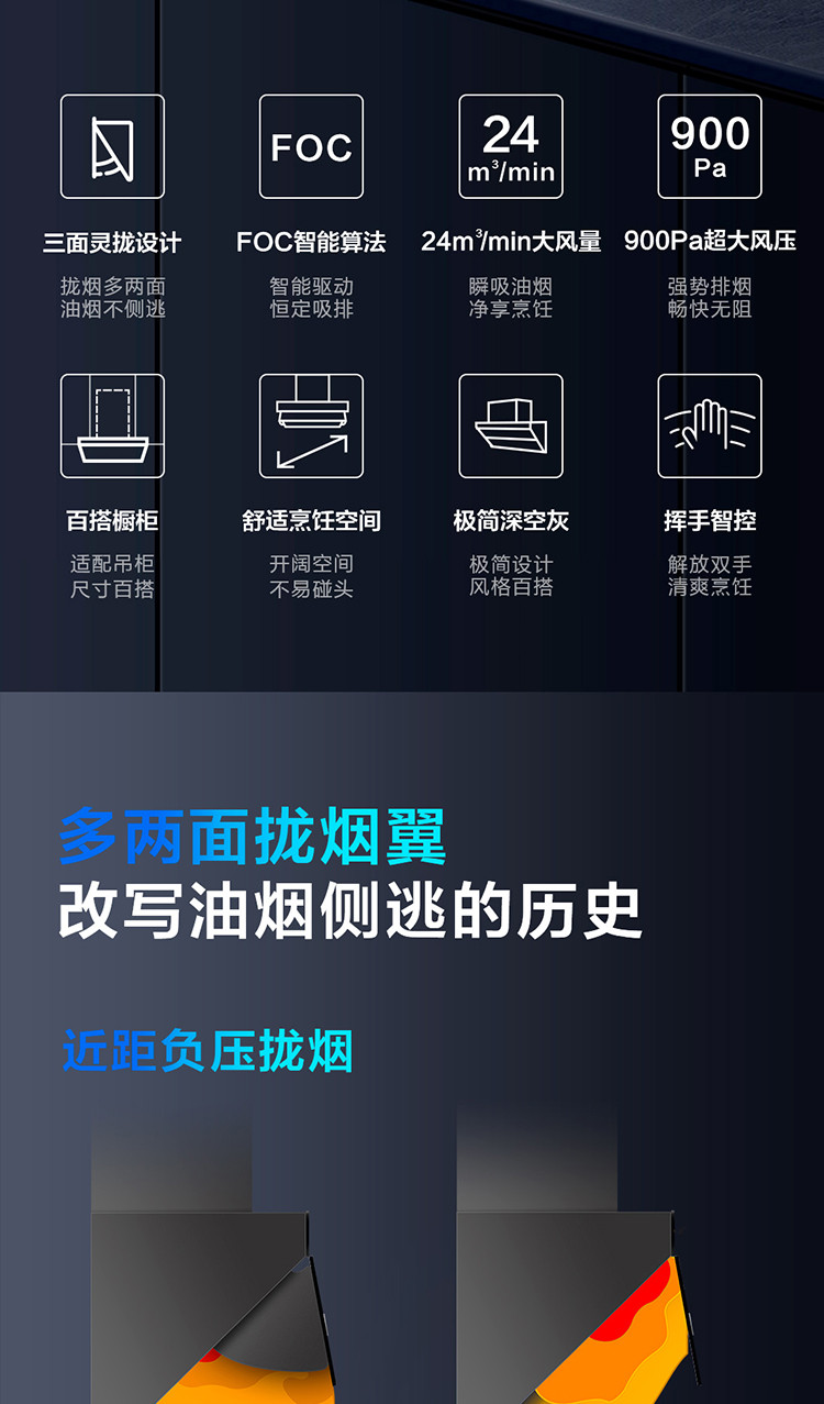 拢烟多两面,油烟不侧逃