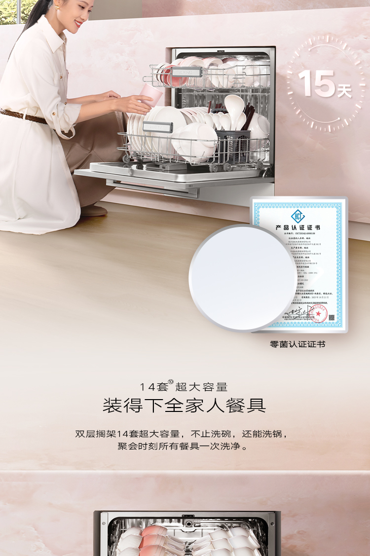 双擎消毒的0菌洗碗机,持久守护家人健康