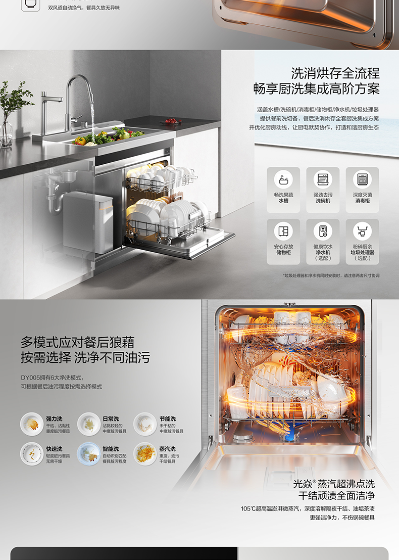 高性能集成洗碗机,光焱洗消真洁净